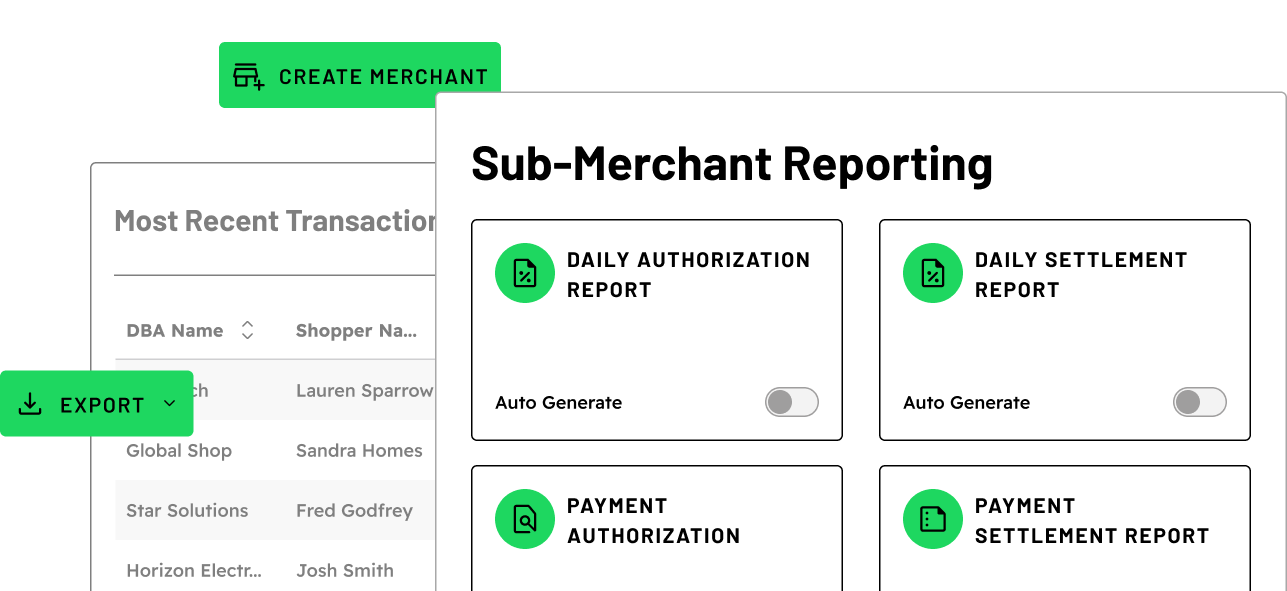 Access transaction data, payouts, and performance metrics for all merchants in one centralized dashboard, giving you visibility, control, and clean reconciliation at scale.