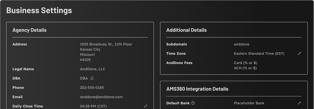 Yes, AndDone integrates with AMS360. We’ll help you configure the connection so your payments flow into the systems your team already relies on.