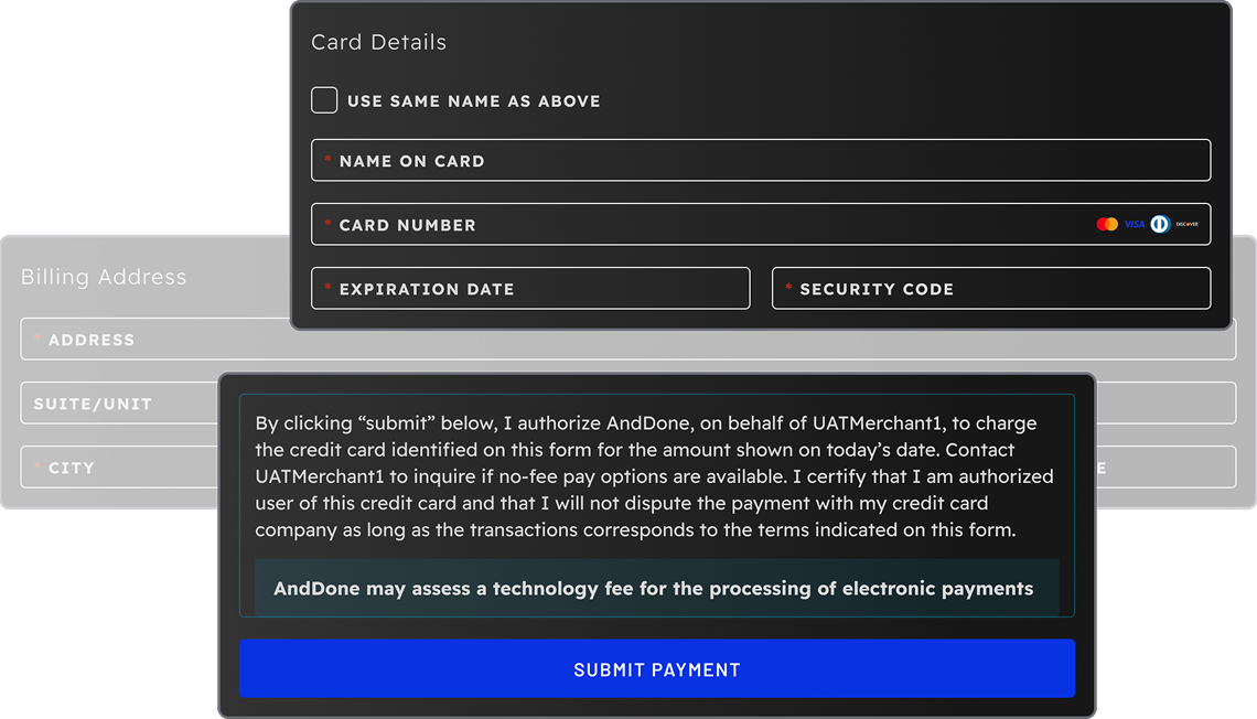 AndDone clearly defines PCI scope, limits exposure with tokenization, and provides access controls and real-time reporting that simplify audits